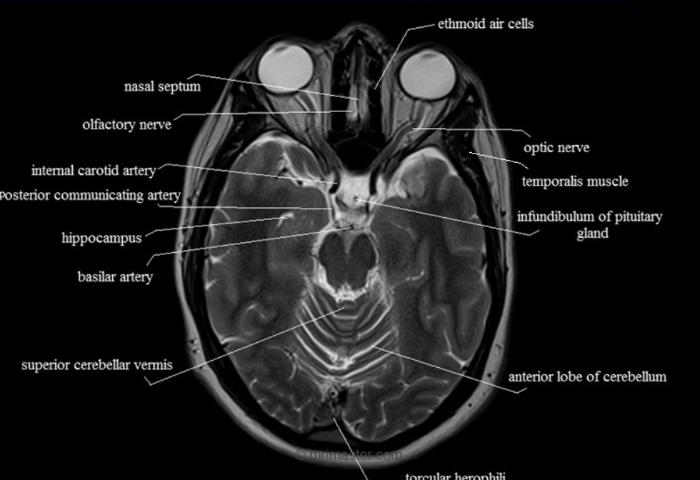 MRI에 대해 axial view로 잘 볼 수 있는 사이트인 mrimaster.com에서 아래 사진들을 따 왔다.